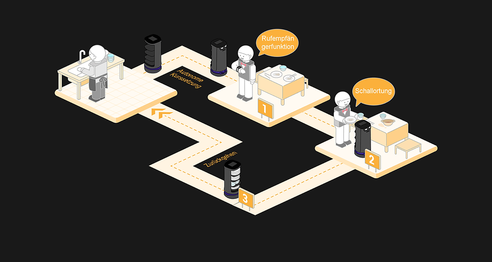Der Pudu HolaBot enthält eine Rufempfängerfunktion[2] ,und gestattet jederzeit das Aufrufen und Zuweisen von Aufgaben an den Roboter.